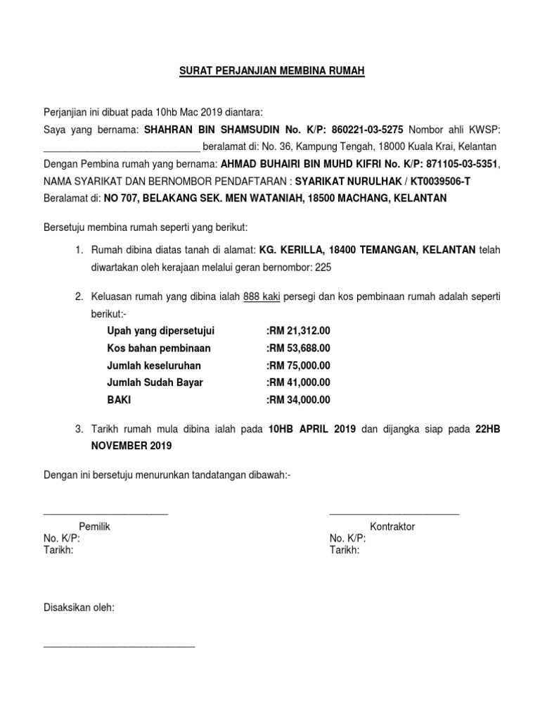 Surat Perjanjian Bina Rumah Letter 7saudara Com